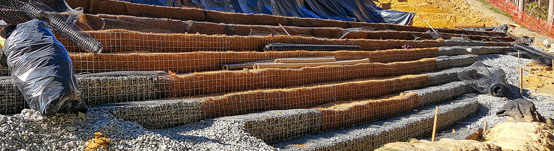 • Geogrid Reinforced Slopes – Slopes can be designed and constructed as steep as 45 degrees by utilizing geogrid reinforcement.